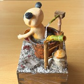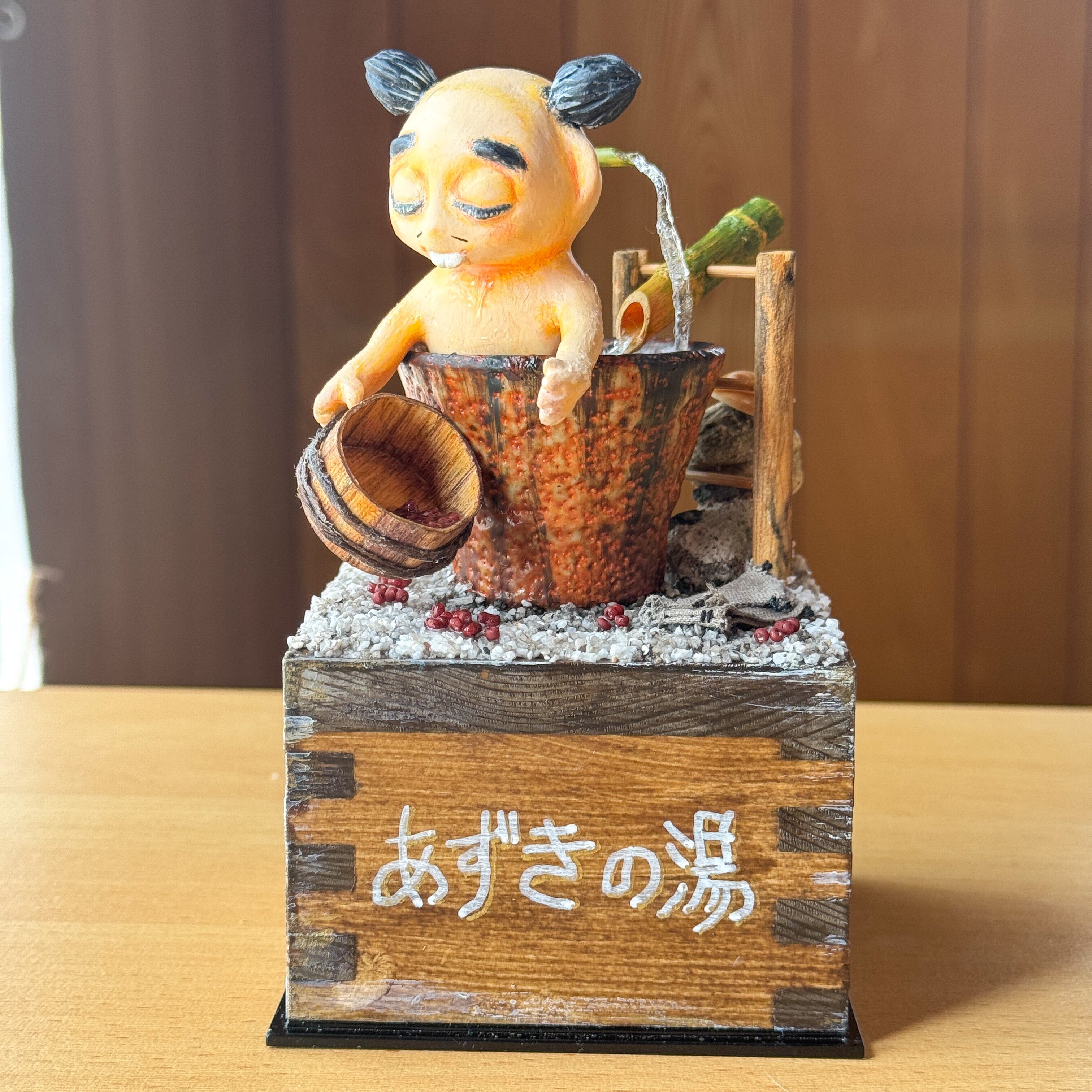 小豆あらいは石粉粘土で丁寧に造形し、肌の陰影は色鉛筆で着色。やわらかく温かみのある色合いに仕上げました。