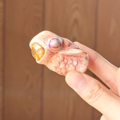 目を閉じ、静かに空を泳ぐ――かと思いきや、大きく開いた口から目玉が飛び出す、