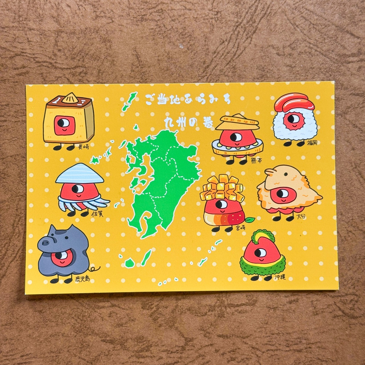 九州地方の名物を身にまとったあらみちたちが、ポストカードになってにぎやかに彩ります。