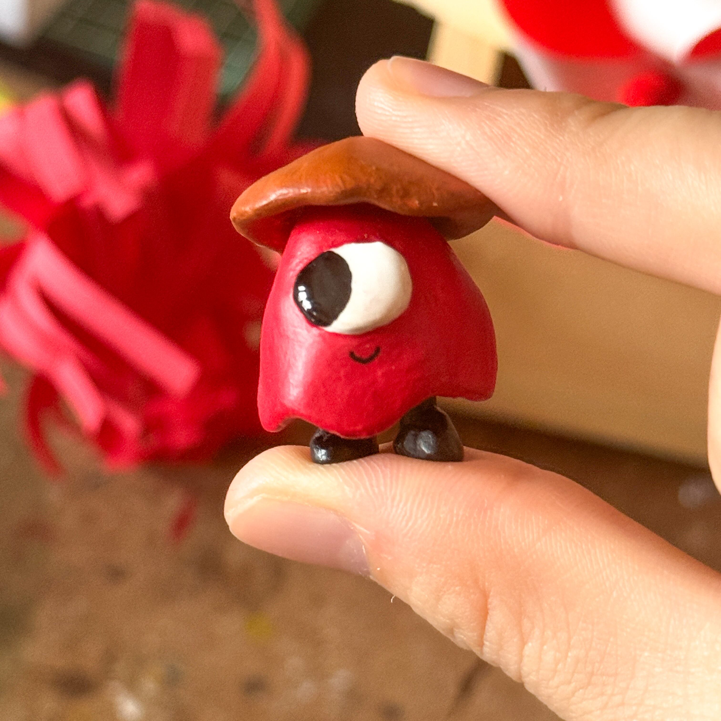 アクリル絵の具で丁寧に着色し、優しい色合いが、手に取るたびにほっとするような温もりを感じさせます。特徴的な大きな一つ目と笑った口元が、そばにいるだけで癒しを与えてくれる存在です。