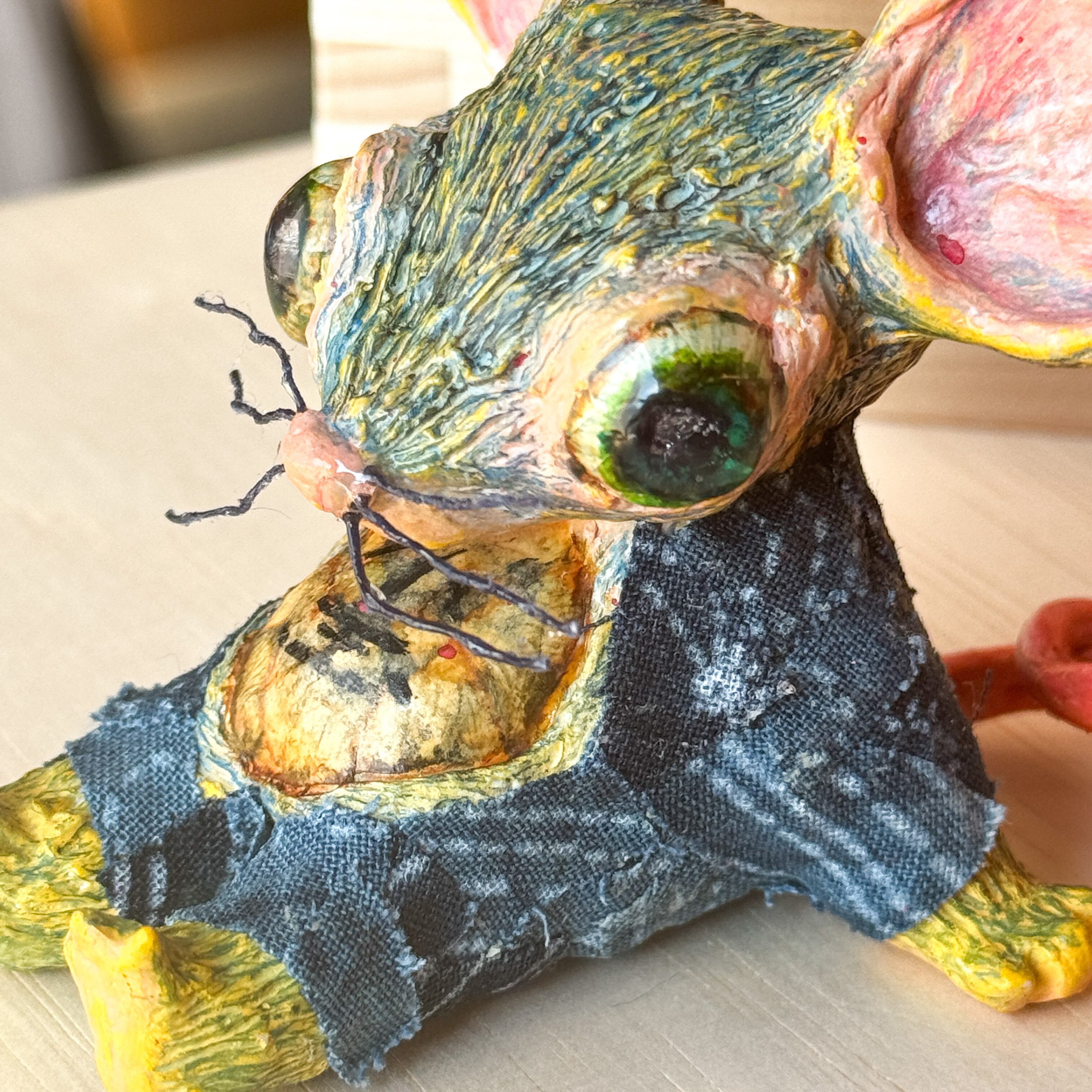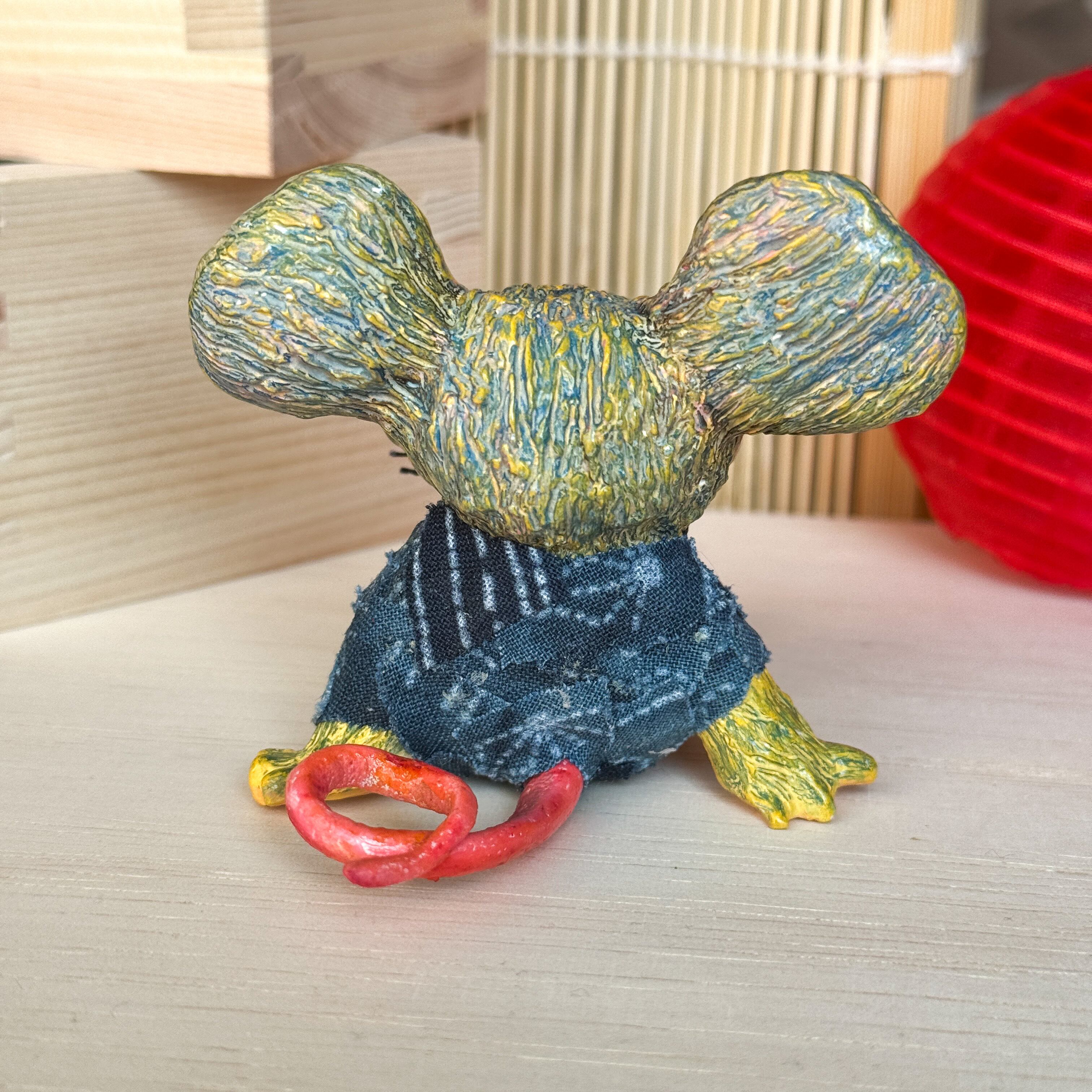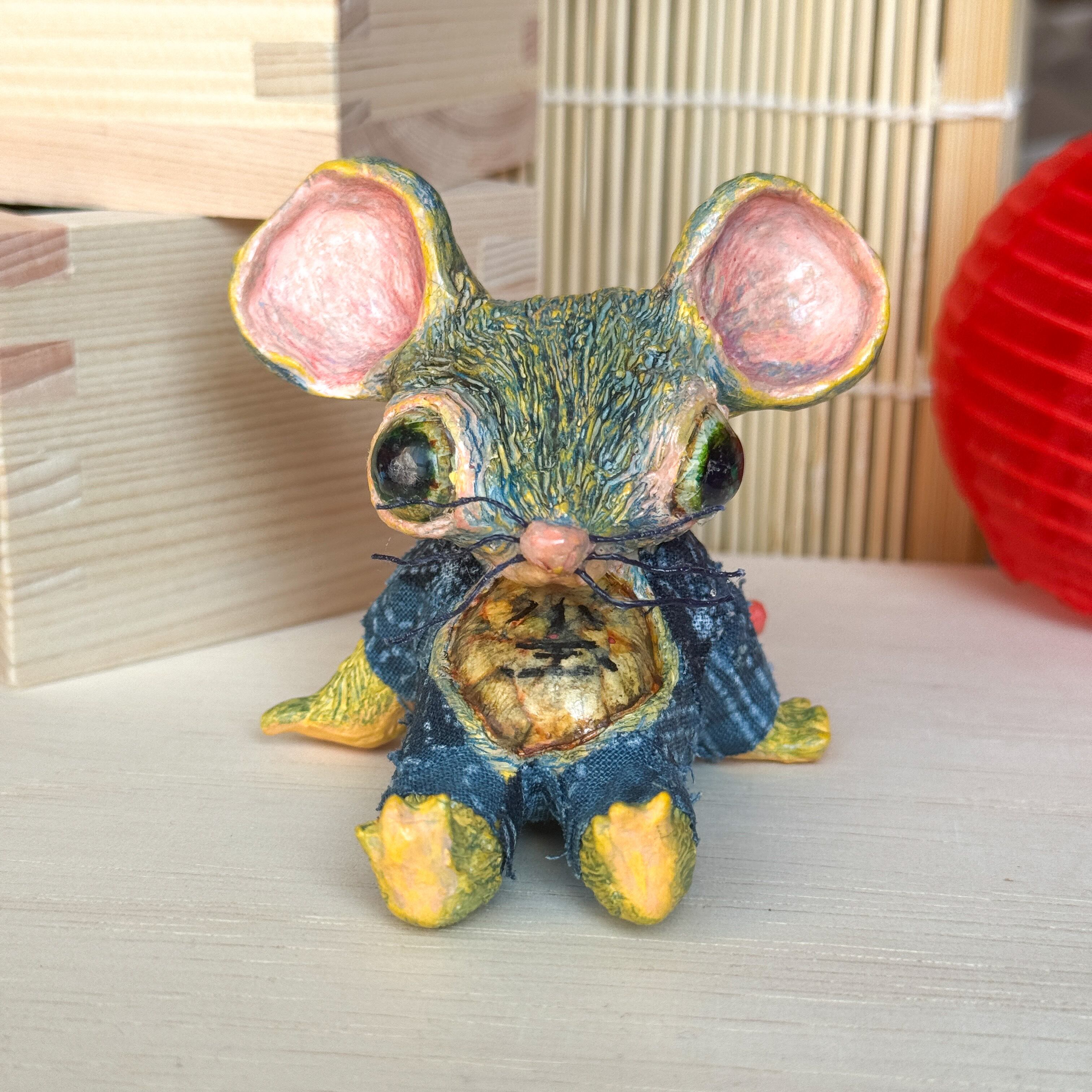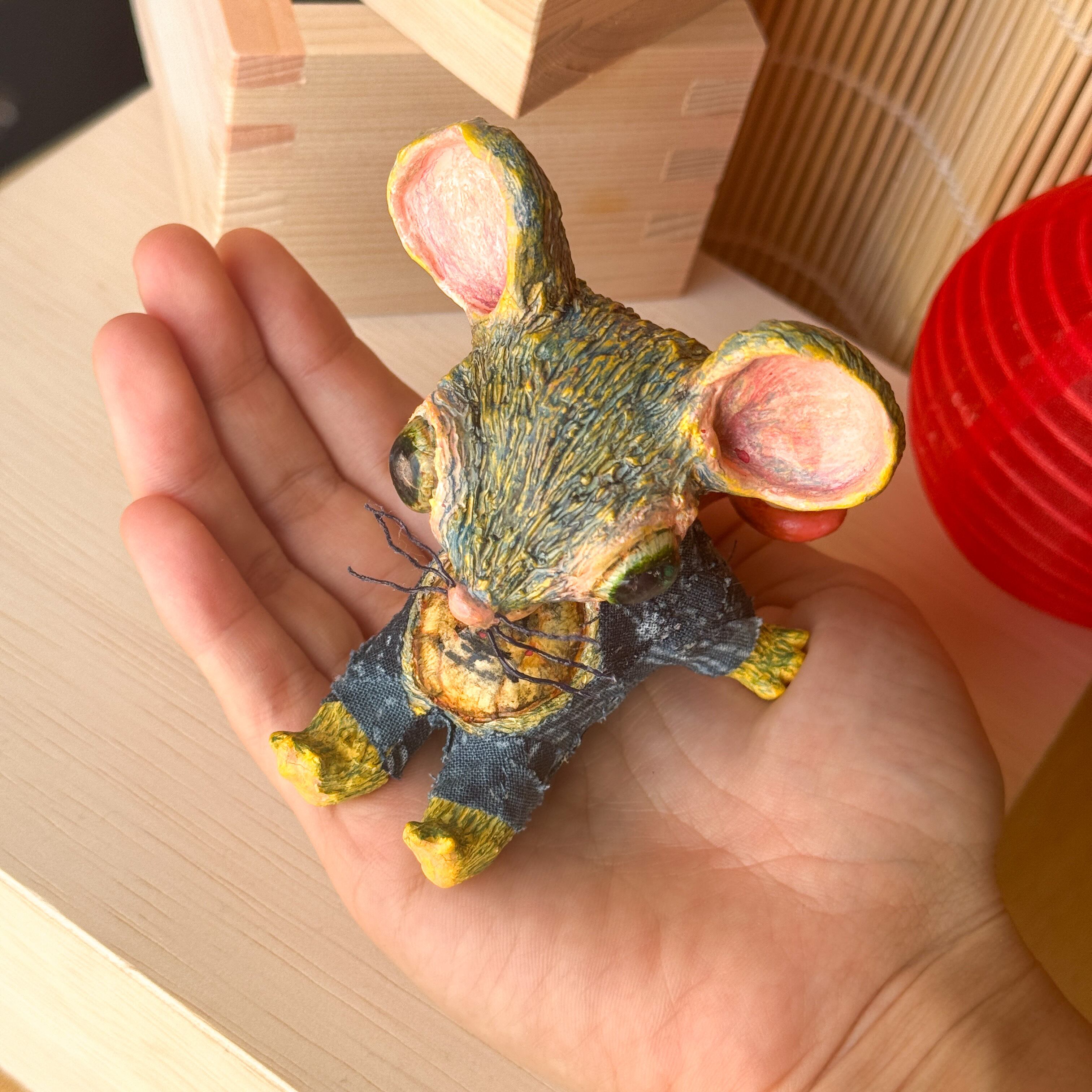この小玉鼠はお腹に「爆弾」を抱えた妖怪鼠です。好奇心と食欲が詰まって膨らんだそのお腹はいつもおやつを求めています。